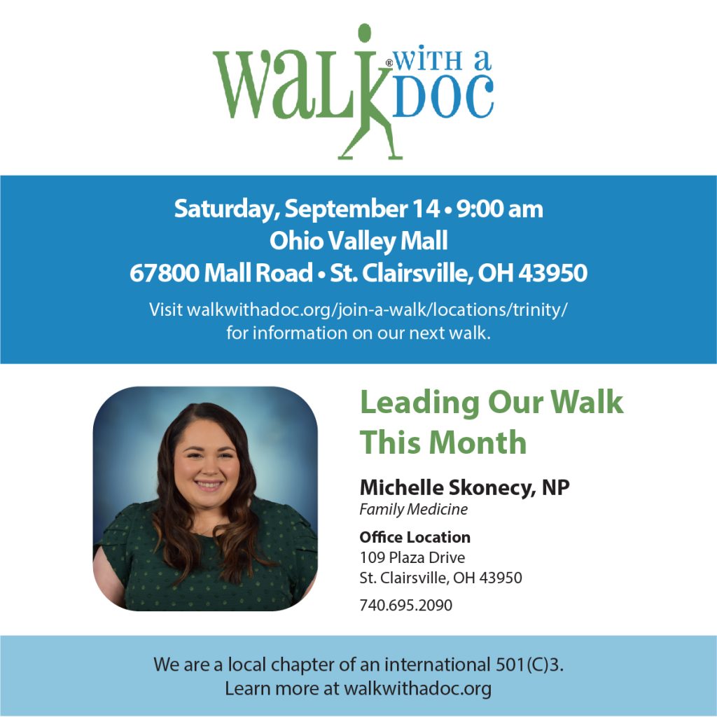 Then, on Saturday, September 14, we’ll be led by Michelle Skonecy, Nurse Practitioner, at the Ohio Valley Mall.