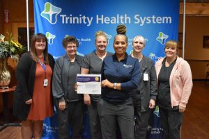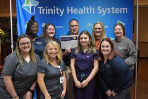 Richardson, the interim market president of Trinity Health System, was speaking to the more than 100 Trinity doctors and staff members who attended a breakfast ceremony at Scaffidi’s Restaurant and Tavern in honor of the hospital’s recipients of the Patient Experience Awards.