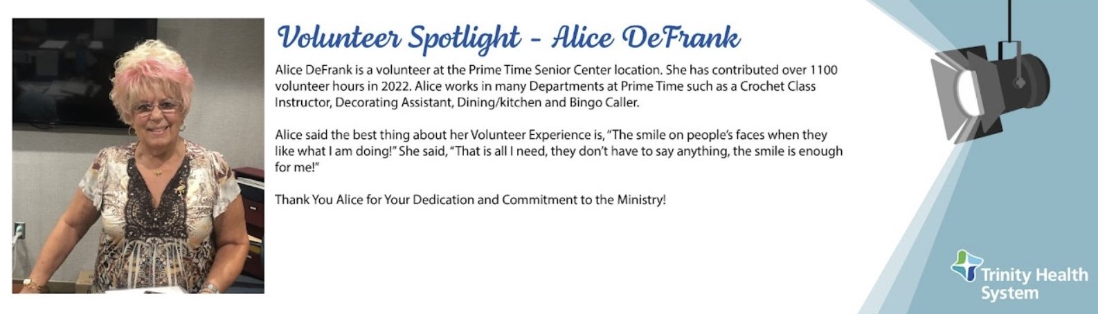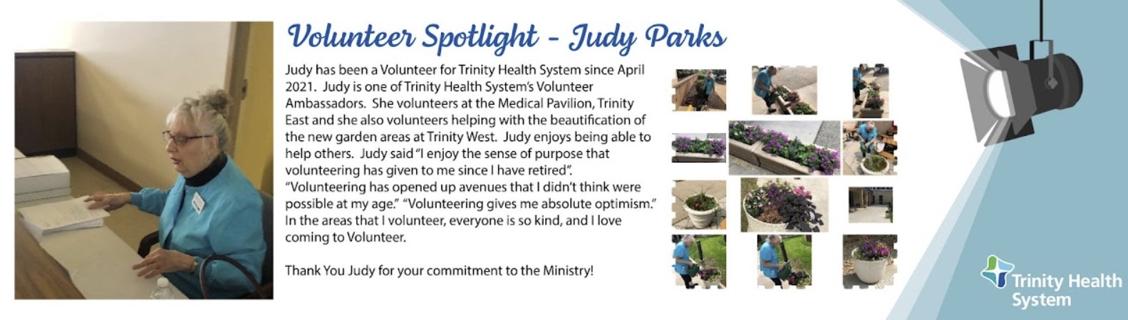 “The Trinity Health System volunteers provide service to 28 different departments at our Trinity East, Trinity West, Trinity Twin City, Prime Time and St. Clairsville locations,” said Lori Jennings, Volunteer Coordinator, Volunteer Services, at Trinity Health System. “All of the departments benefit from our volunteers because of their commitment to the service of our ministry.”