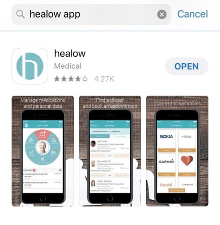 Accessing via a mobile device? Download the Healow app from the app store (see links below).